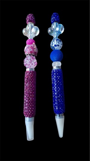 Pennen in verschillende kleuren en met verschillende kralen...